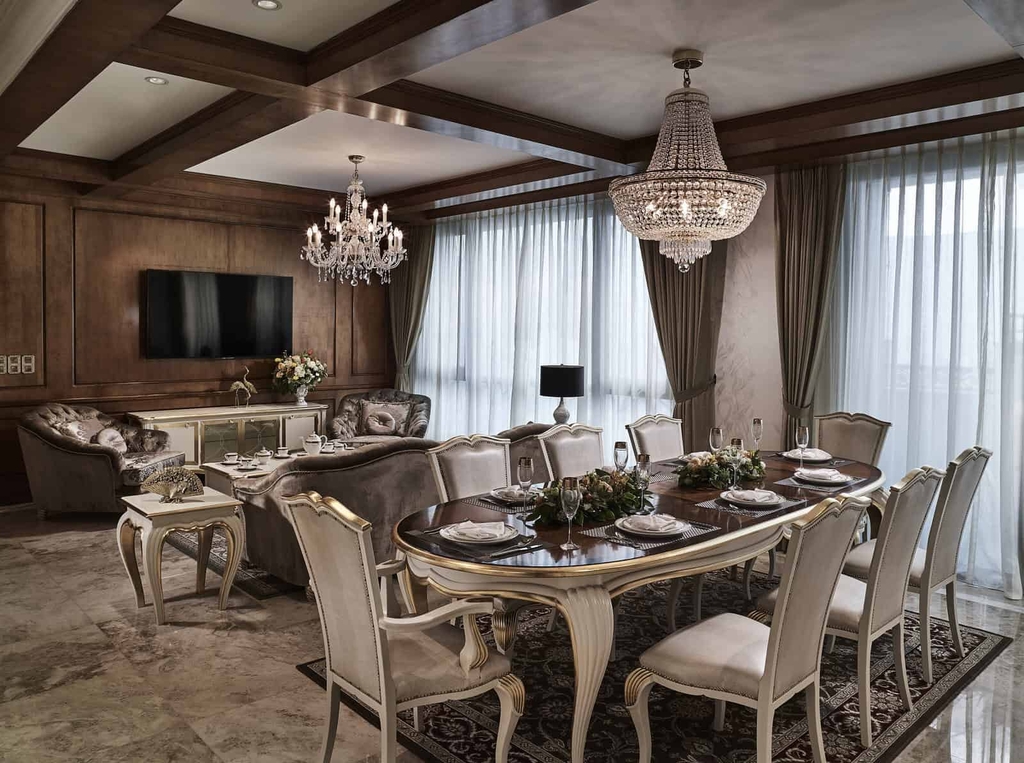 Cả ba phòng ngủ đều được trang bị cửa sổ lớn hoặc hệ kính tràn viền, đem lại cảm giác rộng rãi và thoáng khí, lý tưởng cho những gia đình mong muốn một không gian riêng tư nhưng không tách biệt với thiên nhiên bên ngoài. Nội thất bàn giao theo phong cách “Hyper Luxury”: cửa chính gỗ tự nhiên cao cấp, sàn gỗ phòng ngủ, phòng khách lát đá sang trọng, hệ thiết bị vệ sinh đồng bộ cao cấp từ châu Âu – tất cả thể hiện tinh thần Pháp – Ý cổ điển đặc trưng của dự án.